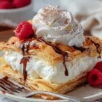 This Easy Cream Puff Dessert is a delightful and simple-to-make treat featuring a light, golden choux pastry crust filled with a creamy vanilla pudding and cream cheese mixture, topped with fluffy whipped topping and optional chocolate syrup drizzle. Perfect for any occasion, this no-fuss dessert brings together classic flavors in an irresistible layered pudding dessert.