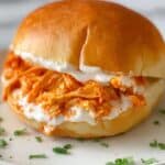 - Serve: Spoon the shredded buffalo chicken onto slider buns or sandwich rolls and serve hot for a satisfying meal.