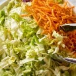 - Toss the Slaw: Pour the sesame dressing over the cabbage mixture and toss thoroughly to ensure every piece is coated with the flavorful dressing.