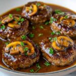 If you have any leftovers, store the Salisbury steak patties and mushroom gravy separately or together in an airtight container in the refrigerator. They’ll stay fresh for up to 3 days, ready for a comforting quick meal whenever you want.
