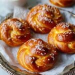 Punch down the risen dough gently to remove air bubbles. Divide it into equal portions, then roll each piece into a long rope. Twist each rope into that classic pretzel shape, which not only looks beautiful but also provides uniform baking. Don’t worry, shaping them is easier than it looks once you get the hang of it!