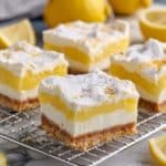 If you want to keep these squares around longer, freezing is a great option. Slice them into squares, lay them out on a baking sheet to freeze individually, then transfer to a freezer-safe container or bag. Frozen lemon bars keep well for up to 2 months—just thaw in the fridge before serving.