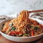 This Easy Lo Mein Recipe stands beautifully on its own but pairs wonderfully with light, refreshing side dishes. A simple cucumber salad with rice vinegar or steamed dumplings adds complementary flavors and textures without overshadowing the main star.