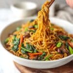 Absolutely! Grilled chicken, shrimp, tofu, or beef all work beautifully with the noodles and veggies. Just cook your protein separately and combine at the end or cook it alongside the vegetables.