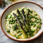 This Easy Spring Asparagus Risotto is a creamy, comforting dish that perfectly balances the fresh flavors of asparagus and peas with the rich taste of Parmesan cheese. Made with Arborio rice simmered in warm vegetable broth and enhanced with lemon zest, this risotto is a delightful vegetarian meal ideal for springtime dinners.