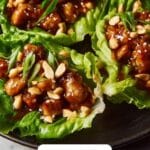 - Assemble Wraps: Spoon the chicken mixture into fresh lettuce leaves. Garnish with the remaining green onions, chopped cashews or peanuts, and sesame seeds. Drizzle with the reserved teriyaki sauce as desired. Serve immediately.