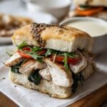 I hope you feel inspired to bring this Focaccia Sandwich with Roast Chicken Filling Recipe into your kitchen because it truly is a delightful celebration of everyday ingredients, coming together for a satisfying meal. Whether you’re packing lunch, feeding guests, or just treating yourself, this sandwich is sure to brighten your day with its fresh flavors and comforting textures. Give it a try—you’ll wonder how you ever lived without it!