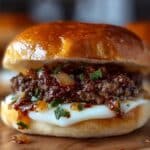 These French Onion Beef Sloppy Joes combine the rich, caramelized flavor of slow-cooked onions with hearty ground beef in a savory Worcestershire-spiked sauce. Served on toasted hamburger buns topped with melted provolone or Swiss cheese, this recipe offers a comforting and flavorful twist on a classic sandwich that’s perfect for a satisfying weeknight dinner.