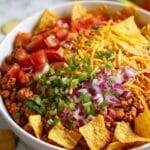 This Fritos Chili Cheese Salad is a hearty and flavorful dish combining seasoned ground beef chili with crispy Fritos, fresh vegetables, and a cheesy topping. Ready in just 30 minutes, it’s perfect for a satisfying lunch or casual dinner, offering a comforting blend of textures and flavors all in one bowl.
