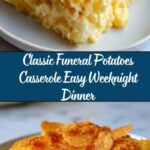 This Funeral Potatoes recipe is a comforting, cheesy casserole featuring crispy hash browns baked with a creamy mixture of sour cream, cream of chicken soup, melted butter, and cheddar cheese, topped with a crunchy buttery cornflake crust. Perfect for potlucks, family dinners, or holiday gatherings, this dish delivers classic American Midwestern flavors in a simple baked casserole.