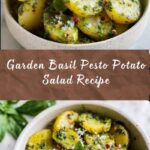 A vibrant and fresh Garden Basil Pesto Potato Salad featuring tender new potatoes tossed in a homemade basil pesto made with toasted pine nuts, Parmesan, garlic, and olive oil, finished with a splash of lemon juice for bright flavor. This salad is perfect as a refreshing side dish for any meal.
