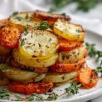 A flavorful and easy recipe for Garlic Herb Roasted Potatoes, Carrots, and Zucchini. This dish features tender, golden-roasted baby potatoes and carrots combined with fresh zucchini and garlic, all infused with fragrant thyme and rosemary. Perfect as a comforting side dish for any meal.