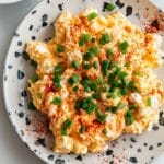 Gochujang Scrambled Eggs is a flavorful twist on classic scrambled eggs, featuring the spicy, savory Korean chili paste gochujang. Enhanced with butter, sesame oil, and fresh green onions, this quick and easy breakfast dish offers a creamy texture and a deliciously bold taste that serves two.