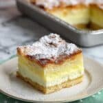 To enjoy a warm slice of gooey butter cake, gently reheat leftovers in the microwave for about 15 seconds. This brings back the soft, melty texture, making every bite just as comforting as when freshly baked.