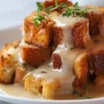 Grandma’s Old-Fashioned Bread Pudding is a classic American dessert featuring day-old bread soaked in a rich custard of milk, cream, eggs, and warm spices. Baked to golden perfection, this comforting treat is perfect served warm with ice cream or a drizzle of caramel sauce.