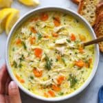 You can freeze this soup, but it’s best to freeze it before adding the egg-lemon mixture to maintain creaminess upon reheating. Freeze in airtight containers or heavy-duty freezer bags for up to 3 months. Thaw overnight in the fridge before finishing the soup with the lemon and egg step.