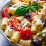 This Greek Pasta Salad Recipe keeps really well in the fridge for up to 3 days. Store it in an airtight container to preserve freshness, and keep in mind that the pasta absorbs some dressing over time, which makes it taste even better after a day.