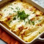 This Green Chile and Chicken Mock Enchilada Casserole is a comforting and flavorful dish combining tender shredded chicken with a rich and creamy green chile enchilada sauce, layered with roasted green chiles and mozzarella cheese. Baked to perfection, this casserole offers a delicious twist on traditional enchiladas without the hassle of rolling tortillas, making it an easy weeknight dinner favorite for 6 servings.