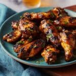 Grill Master Chicken Wings feature perfectly marinated wings cooked on a charcoal or gas grill to achieve a delicious smoky flavor and crispy skin. Marinated in a blend of soy sauce and Italian dressing, then tossed in a buttery hot pepper sauce, these wings are a crowd-pleasing appetizer or main dish ideal for summer cookouts or game day.