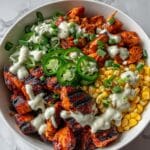 This Grilled Chicken Bowl combines tender, smoky grilled chicken with charred corn and spicy jalapeños, all brought together by a zesty, creamy Greek yogurt sauce. Perfect for a flavorful and nutritious meal, it’s easy to prepare and customizable with fresh toppings like avocado and cherry tomatoes.