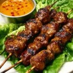 Want to wow your guests? Serve the skewers on a banana leaf platter for an authentic Thai vibe. You could also turn this into a fun appetizer by cutting the skewers into smaller pieces and serving them with individual dipping bowls of peanut sauce at your next party.