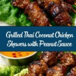 Tender and flavorful Grilled Thai Coconut Chicken Skewers marinated in a fragrant blend of ginger, garlic, soy sauce, and coconut cream, then grilled to perfection and served with a rich, creamy peanut sauce. Perfect for a light dinner or an impressive appetizer, this recipe combines the exotic flavors of Thai cuisine with an easy grilling method for delicious, juicy chicken skewers.