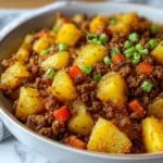 A hearty and flavorful Ground Beef and Potatoes Casserole, combining tender pieces of potatoes, savory ground beef, and vibrant vegetables, all simmered to perfection in a skillet. This one-pan meal is spiced with paprika and cumin, making it a comforting and satisfying dish that’s perfect for a family dinner or a quick weekday meal.