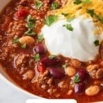 - Serve and Garnish: Ladle the hot chili into bowls and top with your desired garnishes, such as sour cream, shredded cheese, and chopped parsley, if using. Enjoy!
