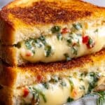 This Grown Up Grilled Cheese sandwich combines the rich flavors of sharp cheddar, creamy brie, tangy goat cheese, and sweet caramelized onions, perfectly melted between buttery sourdough bread slices. Finished with a hint of Dijon mustard and fresh thyme, this elevated grilled cheese is a sophisticated twist on a classic comfort food, ready in just 20 minutes.
