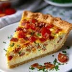 This Hash Brown Crust Bacon and Cheddar Quiche features a crispy shredded hash brown crust filled with a creamy mixture of eggs, sharp cheddar cheese, and smoky bacon. It’s a delicious, hearty brunch dish that combines savory flavors and a satisfying texture with an easy-to-make hash brown base that eliminates the need for traditional pie dough.