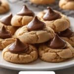 These Homemade Peanut Butter Kiss Cookies are a delightful treat featuring a soft and chewy peanut butter cookie base topped with a melting chocolate Kiss. Perfect for peanut butter lovers, these cookies combine creamy peanut butter, brown sugar sweetness, and the classic touch of a chocolate candy center, baked to golden perfection.