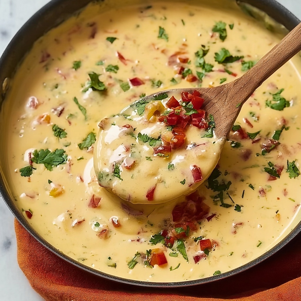 This dip shines when paired with crunchy tortilla chips, but don’t stop there! Try it with crisp veggie sticks like bell peppers, carrots, or celery for a fresh break. Soft pretzels or warm pita bread are also wonderful alternatives that soak up every bit of that delectable queso goodness.