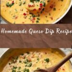 This homemade queso dip is a creamy, cheesy delight perfect for parties or casual snacking. Made with a blend of sharp cheddar and Monterey Jack cheeses, combined with a smooth butter and flour roux, and flavored with green chilies and a touch of spices, it offers a rich and mildly spicy dip that’s easy to prepare in just 15 minutes. Garnished with fresh jalapeños, tomatoes, or cilantro, it’s an irresistible crowd-pleaser best served warm with tortilla chips or fresh veggies.