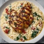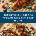 This Irresistible & Creamy Tuscan Chicken Orzo is a flavorful one-pan dish combining tender chicken, creamy sauce, and tender orzo pasta. Infused with sun-dried tomatoes, spinach, and Parmesan cheese, this Italian-inspired main course offers a comforting yet elegant meal perfect for a quick weeknight dinner or special occasion.