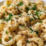 - Finish and Serve: Remove the skillet from heat, then stir in the chopped fresh parsley to add brightness and color. Serve the pasta warm, garnished with extra Parmesan cheese and parsley if desired.