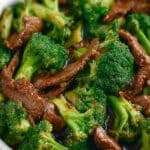 Heat 1 tablespoon of vegetable oil in a large skillet or wok over medium-high heat. Add the beef in a single layer, taking care not to overcrowd the pan, and cook for 2-3 minutes until it is beautifully browned but still tender. Remove the beef and set it aside so it doesn’t overcook while you prepare the broccoli.