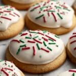 - Glaze and Decorate: In a small bowl, whisk together powdered sugar and 2-3 tablespoons of milk to create a smooth glaze. Dip the top of each cooled cookie into the glaze, then immediately decorate with colorful sprinkles. Allow the glaze to set completely before serving or storing the cookies to keep the decoration intact.
