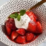 5. Serve and Garnish: Serve the macerated strawberries on their own or as a topping over ice cream, yogurt, or pound cake. Garnish with fresh mint leaves if desired for an added touch of color and aroma.