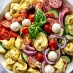 This Italian Tortellini Pasta Salad is a vibrant, flavorful dish perfect for picnics, potlucks, or a refreshing lunch. Featuring tender cheese tortellini combined with fresh cherry tomatoes, cucumbers, black olives, mozzarella, and savory Italian salami, all tossed in zesty Italian dressing and finished with Parmesan cheese and fresh basil. This salad is served chilled, allowing the flavors to meld beautifully for a delicious and satisfying meal.