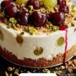 1. Prepare the crust: Preheat the oven to 325°F (163°C). In a medium bowl, combine the graham cracker crumbs, chopped pistachios, sugar, and melted butter until the mixture resembles wet sand. Press the mixture evenly into the bottom of a 9-inch springform pan. Bake for 10 minutes, then set aside to cool.