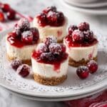 These Mini Cranberry Cheesecakes are a delightful holiday dessert featuring a buttery graham cracker crust, creamy cheesecake filling, and a tangy homemade cranberry topping. Perfectly portioned in a muffin tin, they offer a festive and elegant treat that’s easy to prepare and sure to impress your guests.