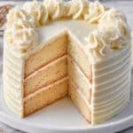 This Moist White Velvet Cake is a delicate and tender dessert featuring a soft crumb made with cake flour, egg whites, and a combination of butter and vegetable oil. Enhanced with vanilla and a hint of almond extract, this cake is perfectly layered and finished with a smooth, creamy buttercream frosting. Ideal for celebrations or a special treat, it delivers a classic white cake experience with moist texture and a luscious finish.