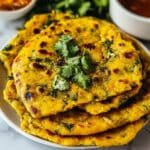 Moong Dal Chilla is a savory Indian pancake made from soaked and blended yellow moong dal, spiced with ginger, green chili, and cumin seeds. Lightly pan-fried to golden perfection, this protein-rich dish is perfect for breakfast or a healthy snack and is naturally gluten-free and vegetarian.