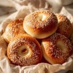 - Add Toppings and Bake: Sprinkle the bagels with your choice of sesame seeds, poppy seeds, dried onion flakes, or coarse salt. Bake for 20-25 minutes until they turn golden brown.