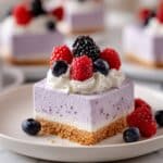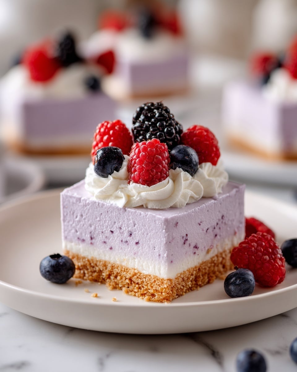 For an eye-catching presentation, serve this cheesecake in individual clear glasses or mason jars to display those vibrant berry layers. You can also layer the crust, filling, and berries multiple times for a parfait effect that’s as fun to assemble as it is to eat.