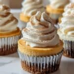- Garnish and serve: Just before serving, top each mini cheesecake with a dollop of whipped cream and a sprinkle of cinnamon or extra crushed graham crackers for added texture and flavor.