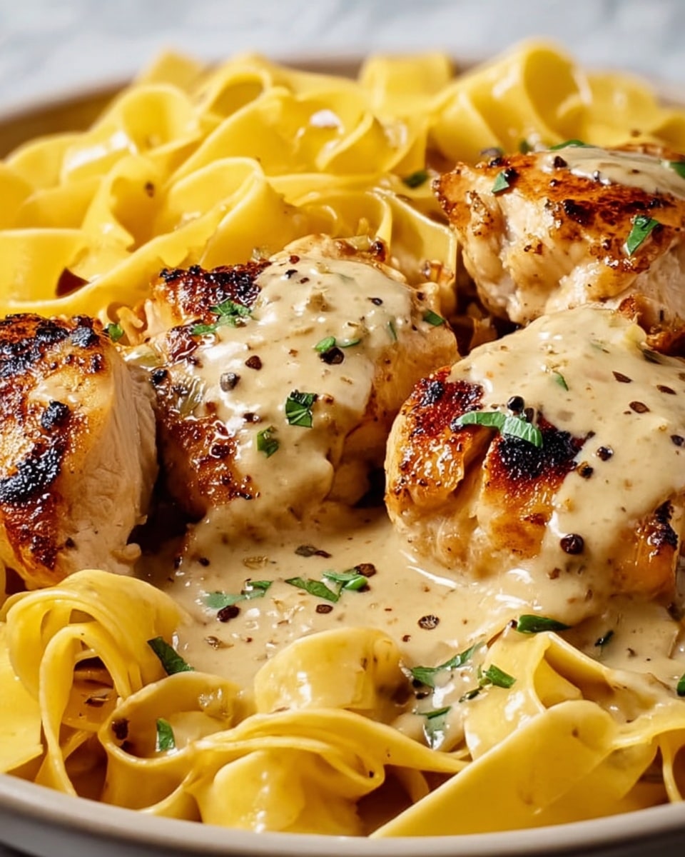 One-Pan Creamy Garlic Butter Chicken with Egg Noodles Recipe