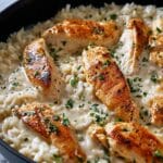 This One-Pan Creamy Parmesan Chicken and Rice is a comforting and delicious meal that combines tender chicken, creamy Parmesan sauce, and fluffy rice in a single skillet. Perfect for a quick weeknight dinner, it features simple ingredients cooked together to create a rich and flavorful dish with minimal cleanup.
