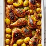 You can marinate the chicken and potatoes in the sauce a few hours in advance or overnight to deepen the flavors. Just keep it covered in the fridge until ready to bake.