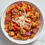 This One-Pan Pizza Pasta combines all the flavors of your favorite pizza into a comforting pasta dish. Featuring tender chicken, savory pepperoni, and a blend of mozzarella and Parmesan cheeses, this easy and hearty meal cooks entirely in one skillet, making cleanup a breeze. Ready in just 30 minutes, it’s a perfect weeknight dinner to satisfy pizza cravings with a pasta twist.